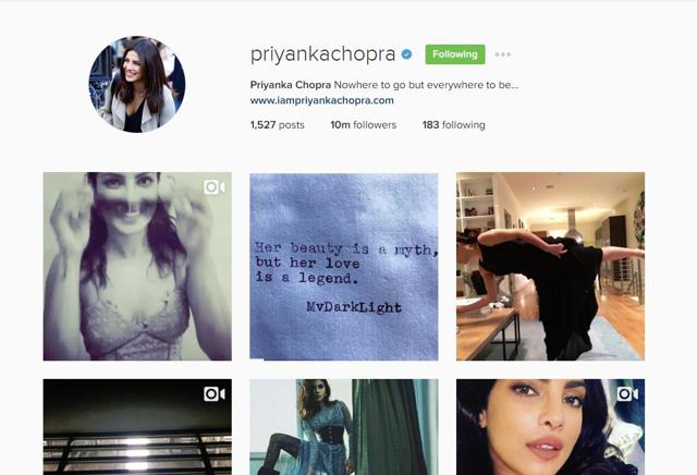 10 million! Priyanka Chopra is the second most-followed Indian on Instagram