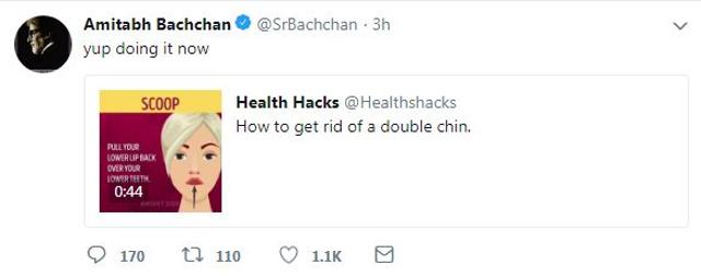 Amitabh Bachchan is trying to lose his double chin by watching viral fitness videos on Twitter
