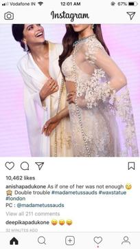 As actor Deepika Padukone unveiled her wax statue on Thursday at Madame Tussauds in London, it was her sister Anisha Padukone who registered a “caption win”. Sharing Deepika’s picture where she is looking adoringly at the statue, Anisha cheekily wrote, “As if one of her was not enough. Double trouble #madametussauds #waxstatue #london PC : @madametussauds.”