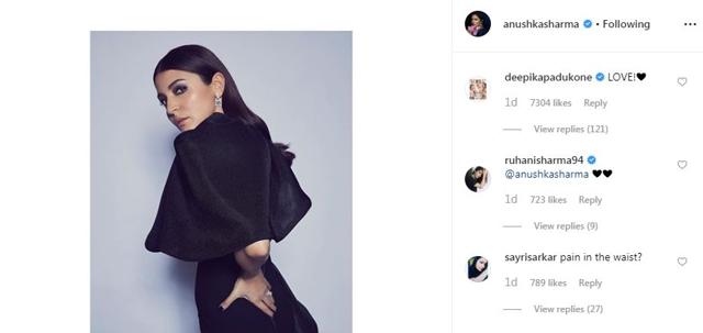 In the first picture, shared on Friday when she attended the HT India’s Most Stylish Awards, Anushka is seen in a stunning black outfit, striking an unusual pose. “LOVE!,” Deepika wrote in her comments in all caps and with a heart emoji.