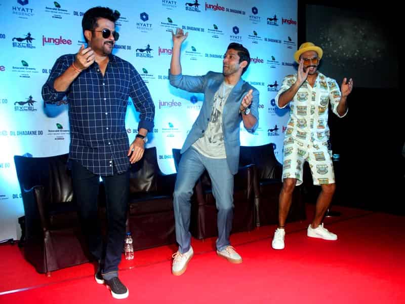 Anil Kapoor promotes Dil Dhadakne Do with Farhan Akhtar and Ranveer Singh.