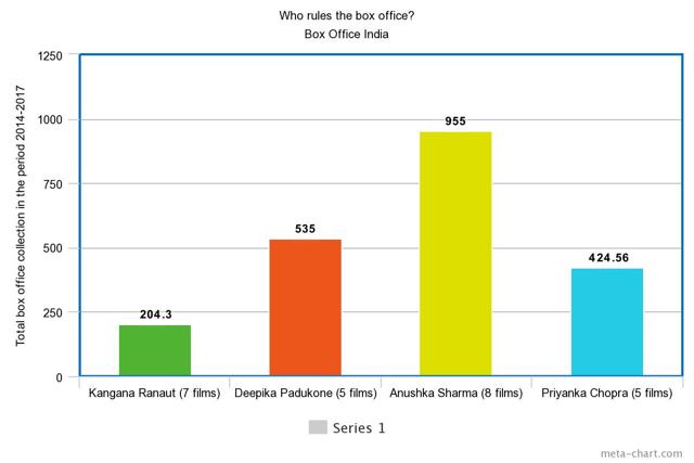 As Simran releases ending a rather wrought promotional run marked by controversies, we take try to find out who rules the box office in terms of numbers -- Kangana Ranaut, Anushka Sharma, Priyanka Chopra or Deepika Padukone.