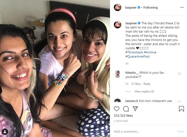 Taapsee Pannu shares throwback picture in which she can be seen flaunting the rakhi tied on her wrist by her sister Shagun.