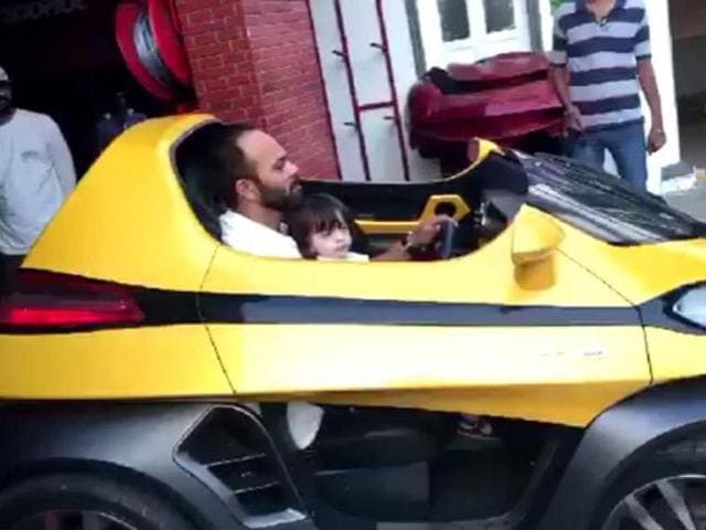 Shah Rukh Khan’s son AbRam drove around in a car with filmmaker Rohit Shetty even as SRK stood by. (YouTube grab)