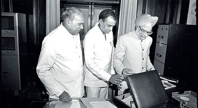 Then finance minister Manmohan Singh as he leaves for parliament with the budget on 24 July 1991 (SN Sinha /HT Photo)