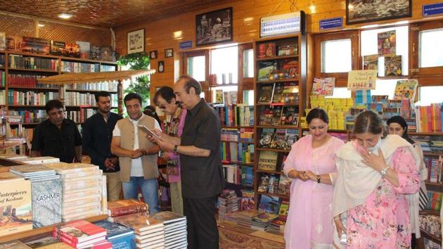 Former J&K chief minister Ghulam Nabi Azad browses through books at Gulshan Books in Srinagar. (Gulshan Books Facebook)