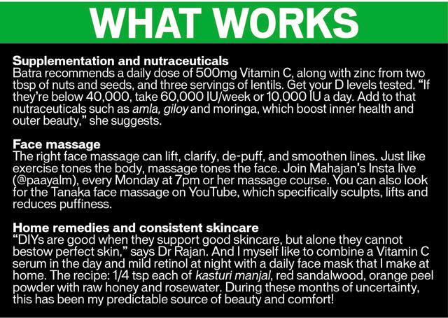 Beauty from the inside-out is also the theme with Dr Renita Rajan, founder and chief consulting dermatologist, Render Skin & Hair Clinic, Chennai. “The lockdown was in three phases – first when everyone was in holiday mode, second when people realised that not wearing make-up brought into focus skin imperfections caused by the wrong lifestyle choices.”