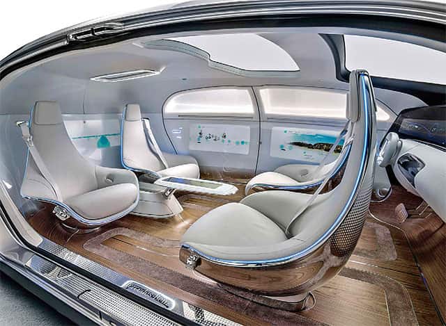 Let’s talk: With driverless cars, we can look forward to lounge-like seats that allow the occupants to face each other and interact.