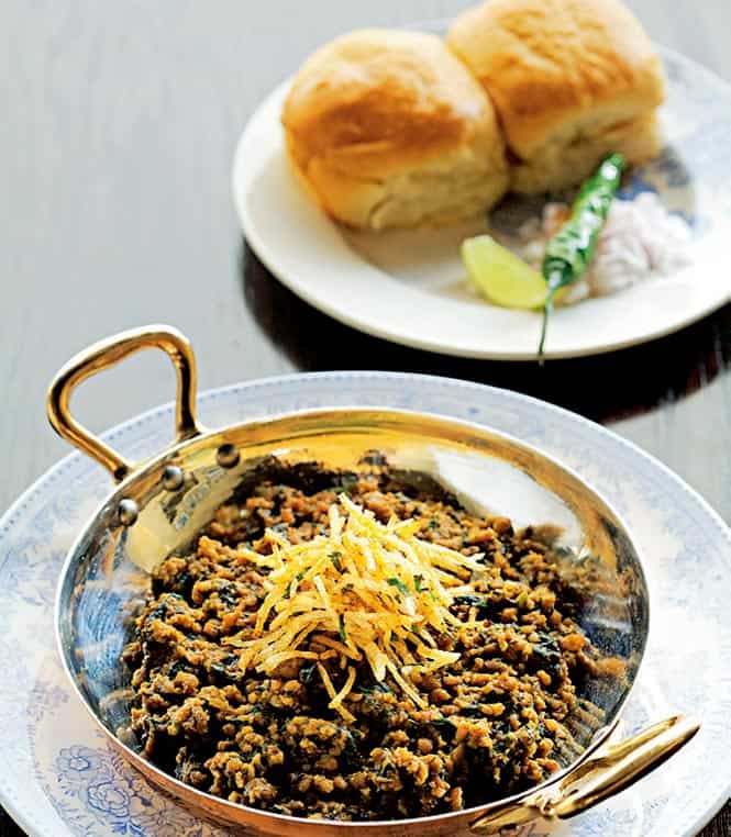 But the kitchen came into its own with the simpler dishes: a keema (made from kid gosht) with methi, served with pav bread, a delicious black dal, perfectly cooked palak and an authentic Kerala prawn curry.