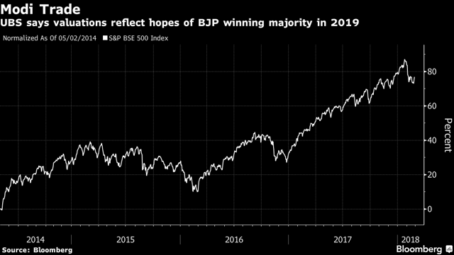 Most investors have priced in Prime Minister Narendra Modi winning a second term in the 2019 elections. A change in expectations through this year could derail a rally that’s almost doubled the nation’s equity values since Modi took office four years ago.