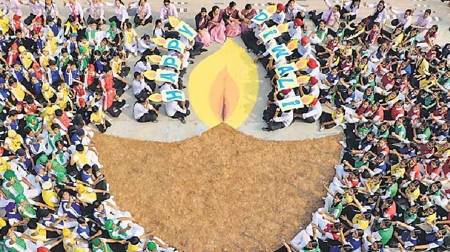 Students from various schools in Punjab celebrate Diwali.
