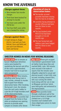 Nine of the juveniles who escaped face charges of murder, while three are booked for attempt to murder, two under the Protection of Children from Sexual Offences (POCSO) Act, two face loot and robbery offence while one was booked for rioting in Jhajjar.