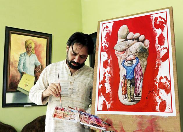 The live painting by a Bathinda artist of Punjabi poet Lal Singh Dil’s famed poem about a migrant labourers’ tale has gone viral on social media