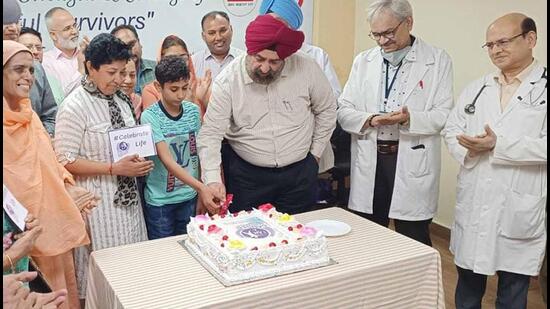 Civil surgeon Dr SP Singh at Mohandai Oswal Hospital to mark National Cancer Survivors’ Day in Ludhiana. (HT PHOTO)