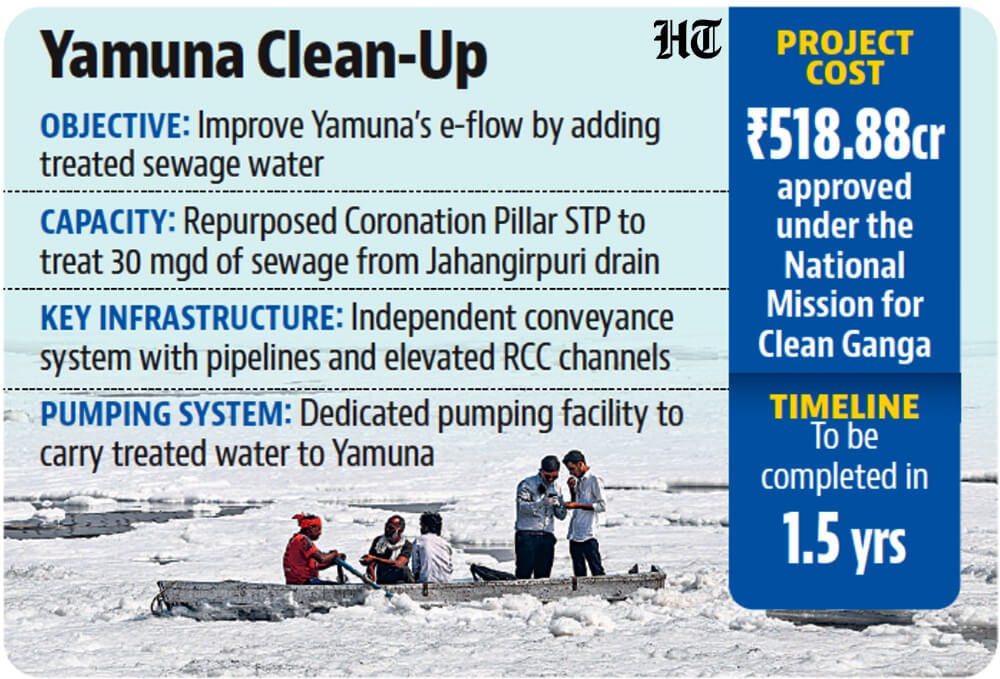 On June 24, 2025, HT reported that the central government monitored the Yamuna rejuvenation plan about increasing e-flow through Coronation Pillar and Yamuna Vihar plants. The 22km stretch of the Yamuna in Delhi, from the Wazirabad Barrage to the Okhla Barrage, is less than 2% of the river’s total length, but accounts for nearly 76% of its total pollution.