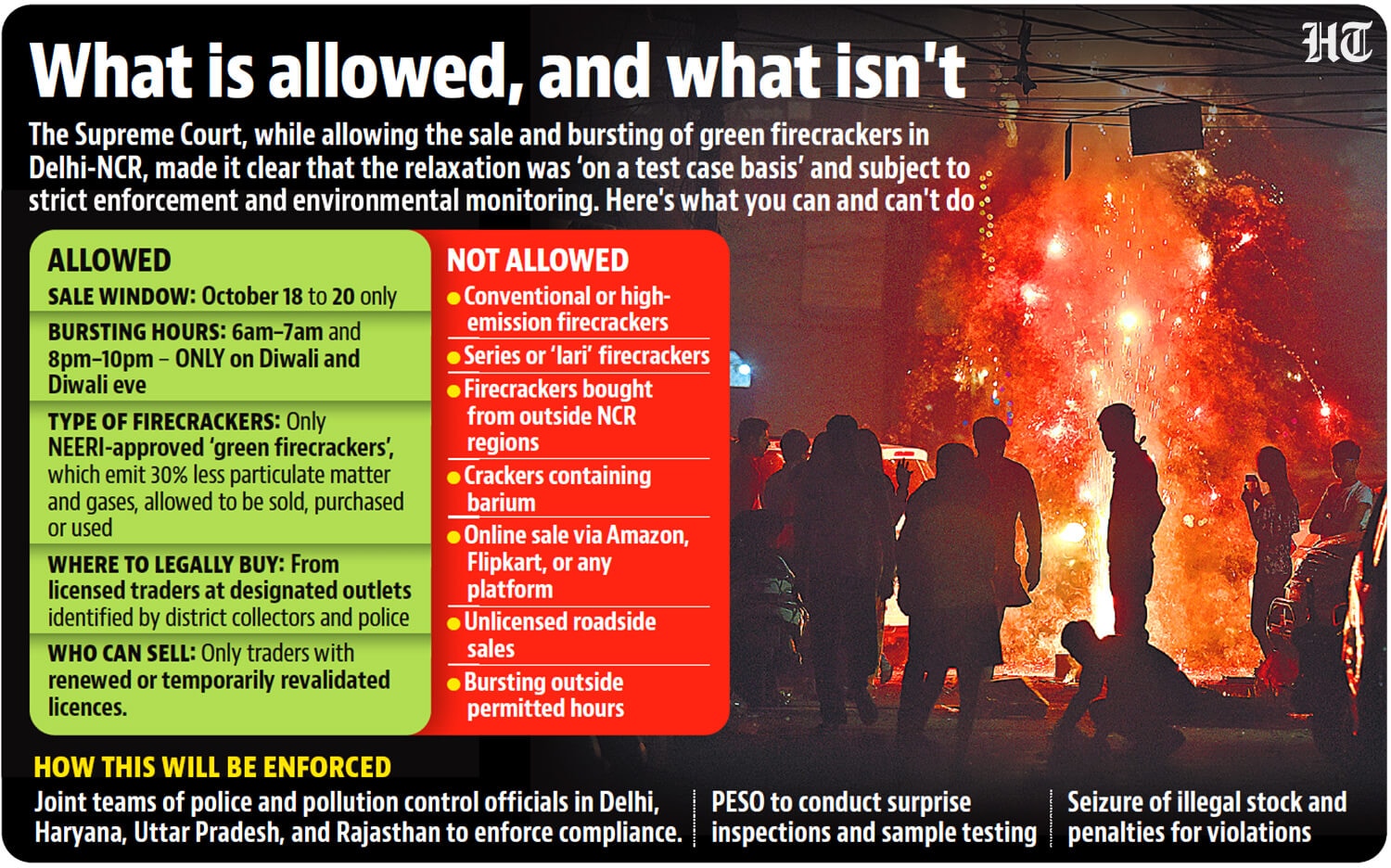 The Supreme Court’s October 15 order allows only certified “green crackers” to be sold between October 18 and 20 – a measure intended to balance Diwali festivities with Delhi’s worsening air quality. But on the ground, there’s little clarity – and even less enforcement.