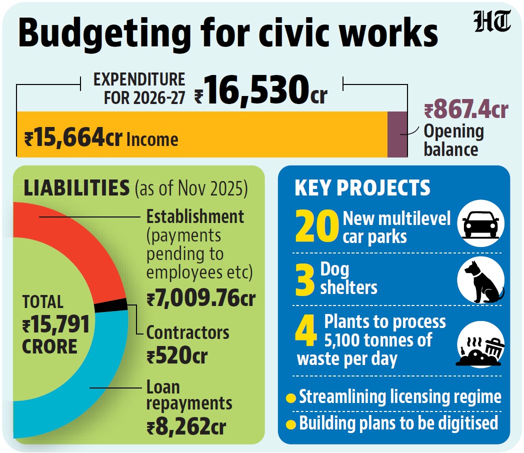 New Delhi: Municipal commissioner Ashwani Kumar on Friday presented the municipal budget for the 2026-27 financial year, with an estimated expenditure of ₹16,530 crore, of which 29.01% has been reserved for sanitation works. There was no proposed property tax revision, amid a deepening financial crisis, with liabilities of over ₹15,791 crore.