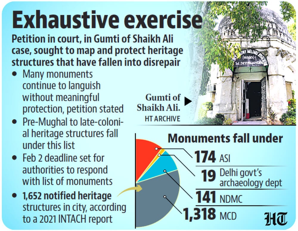 The Supreme Court on Tuesday initiated an exhaustive exercise to map the status of Delhi’s archaeological sites, directing multiple civic and governmental agencies to submit detailed conservation status of the Capital’s notified heritage structures.