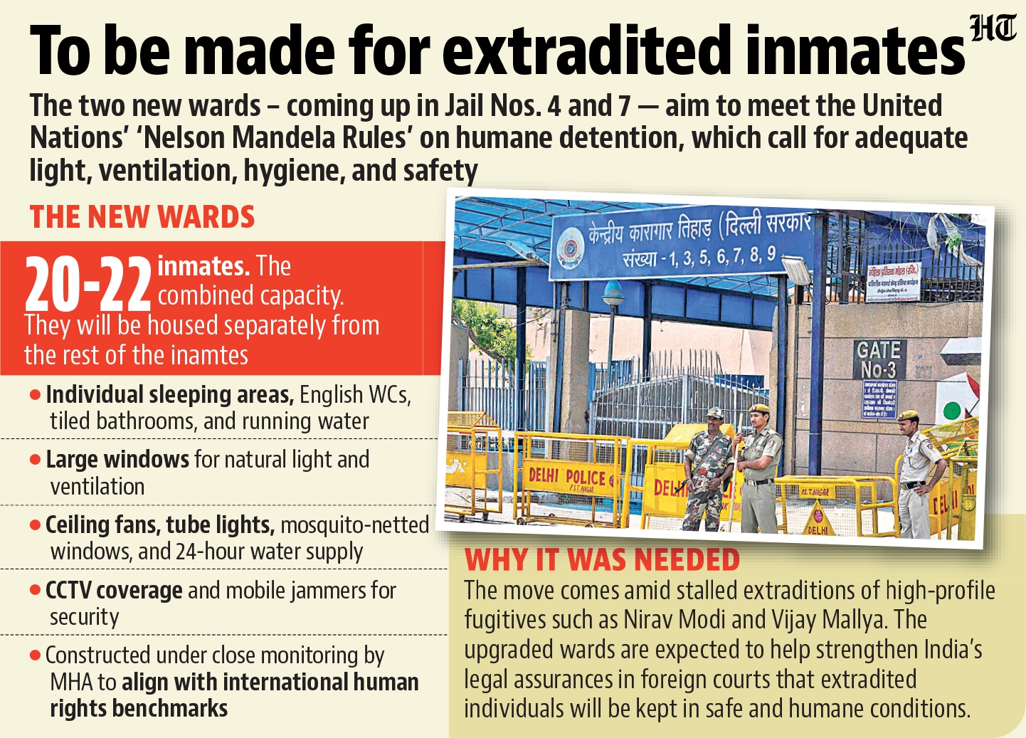 Adopted by the UN General Assembly in 2015, the Mandela Rules underscore humane treatment of prisoners, ensuring they live in “clean, adequately ventilated cells with sufficient light and access to medical care.” Compliance with these norms, Indian officials said, will help strengthen the country’s case in pending extradition requests, particularly with the UK.