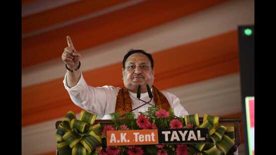 “During the pandemic, PM Modi gave ₹20 lakh crore packages in May 2020, launched PM Garib Food Yojana, gave ration to 80 crore people. The country has witnessed 12% decline in poverty from 22 % to 10%. The ‘Graib Kalyan’ programme ensured the welfare of the poor. Initiatives like ‘Swachh Bharat Abhiyan’, ‘Ujjawala Yojana’, one nation-one tax, one nation-one grid, one-nation, one-ration card gave thrust to development,” the BJP chief said.