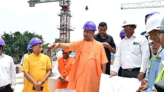 UP CM visits Ayodhya, takes stock of Ram temple construction