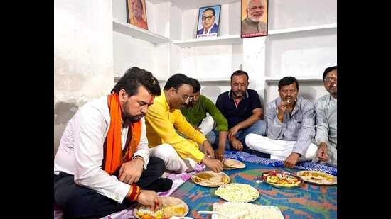 Union minister for sports, information and broadcasting Anurag Thakur had lunch at a Dalit party functionary’s residence in Lucknow on Sunday