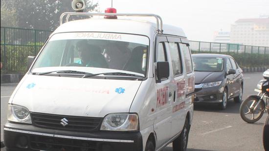 In a meeting of the members of private ambulance association, it was decided that they will provide round-the-clock free travel facility to Covid patients by 15 ambulances. (HT PHOTO)