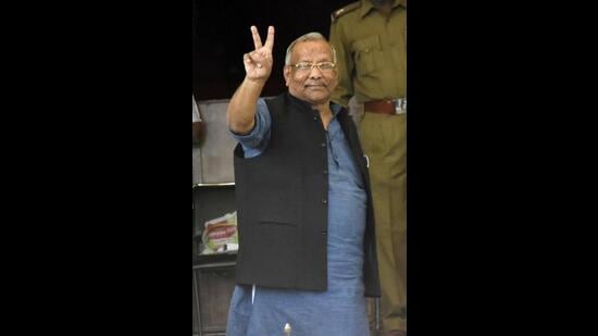 Bihar deputy chief minister Tarkishore Prasad on his way to the Bihar assembly on Friday. (Santosh Kumar/HT Photo)