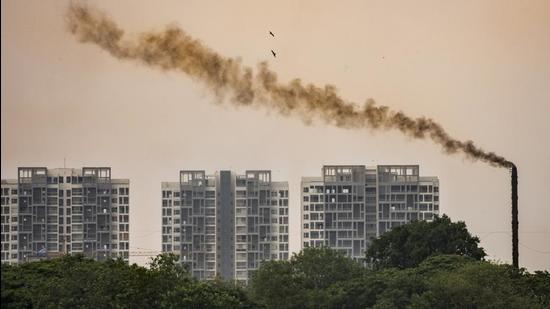 Smoke is seen coming out of a crematoriums chimney where Covid-19 dead bodies are cremated at Yerwada in Pune, India, on Friday. (Pratham Gokhale/HT Photo)
