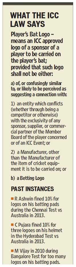 “According to the new ICC rules, length of the sponsors’ logo can’t be more than nine inches. But it was found that Vijay’s bat flouted the rule,” said a team official.