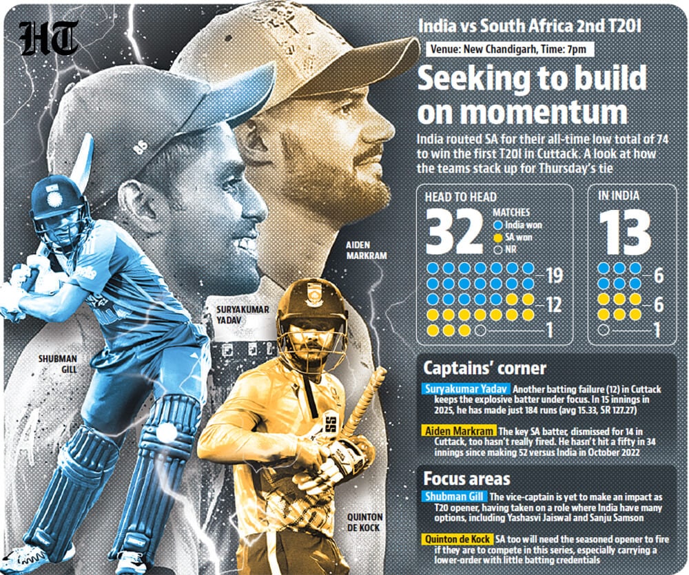 Over the past few days, there hasn’t been a lot of dew at New Chandigarh. With the venue known for high-scoring IPL encounters, India in red-hot form, and the stadium poised for its men’s international debut, Thursday’s clash promises fireworks—and a memorable night for fans in the region.