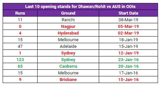 India vs Australia: Stats reveal why Rohit Sharma-Shikhar Dhawan partnership is a big cause for concern