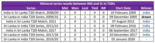 India hold an impeccable record against Sri Lanka in bilateral T20I series. Excluding the ongoing series, the teams have clashed against each other in six series, with India winning five and one series was drawn in 2009. Moreover, India haven’t lost a T20I against Sri Lanka since 2016.