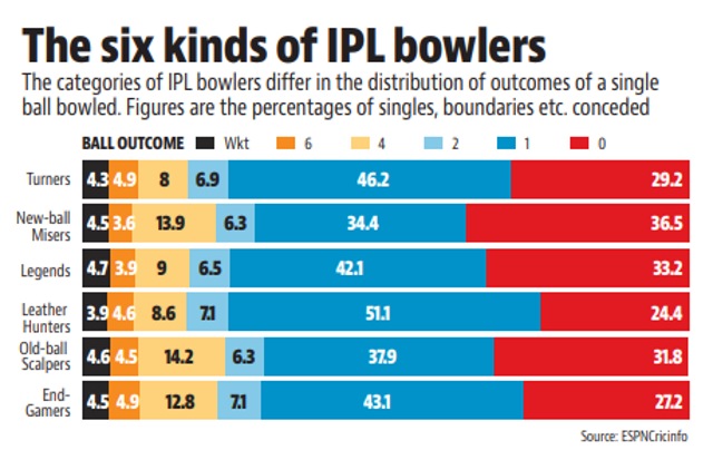 Into its 12th season now, the IPL has gone on for long enough for statisticians to unearth strong patterns. Last week, we classified the batsmen into six distinct categories by observing how they collect their runs. Drawing from the same well of data, today we take a look at the bowlers.