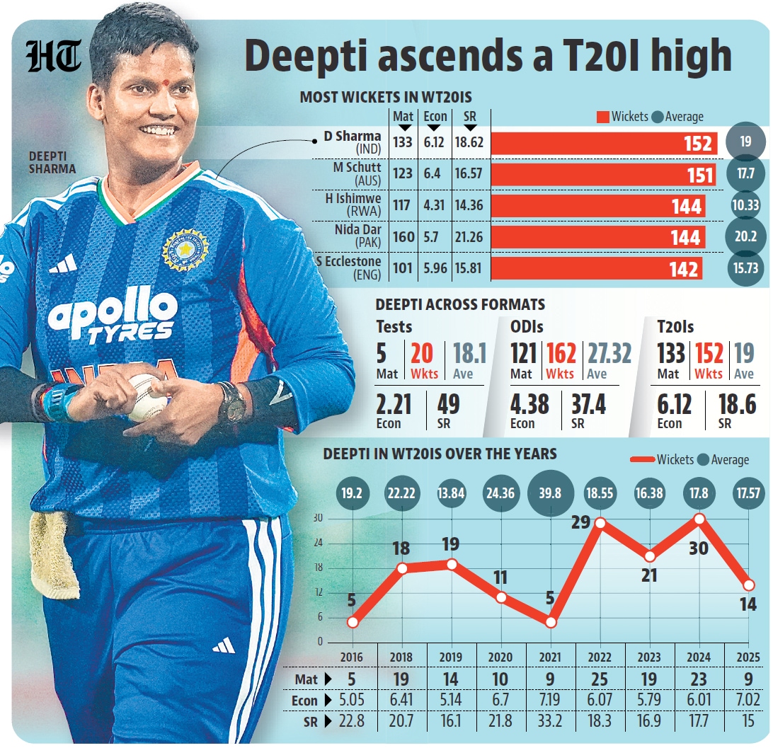 Beneath the calm is a body of work so persistent that it reshapes how greatness is measured. As she became the leading wicket-taker in T20Is on Tuesday, she confirmed a notion around a legacy built not on spectacle, flashiness or moments but on mastery and repeatability.