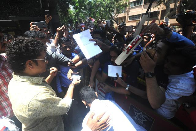 Sachin Tendulkar celebrates 46th birthday with fans in Mumbai - See Pictures