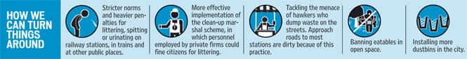 A sanitation supervisor said people don’t throw waste inside metro stations because they are afraid of being fined. There are similar laws for other public places too but officials say that fines are meagre and are hardly imposed. A proposed amendment to the law to raise the fine amount from the existing Rs 500 — for littering, urinating and spitting in public places — is pending.