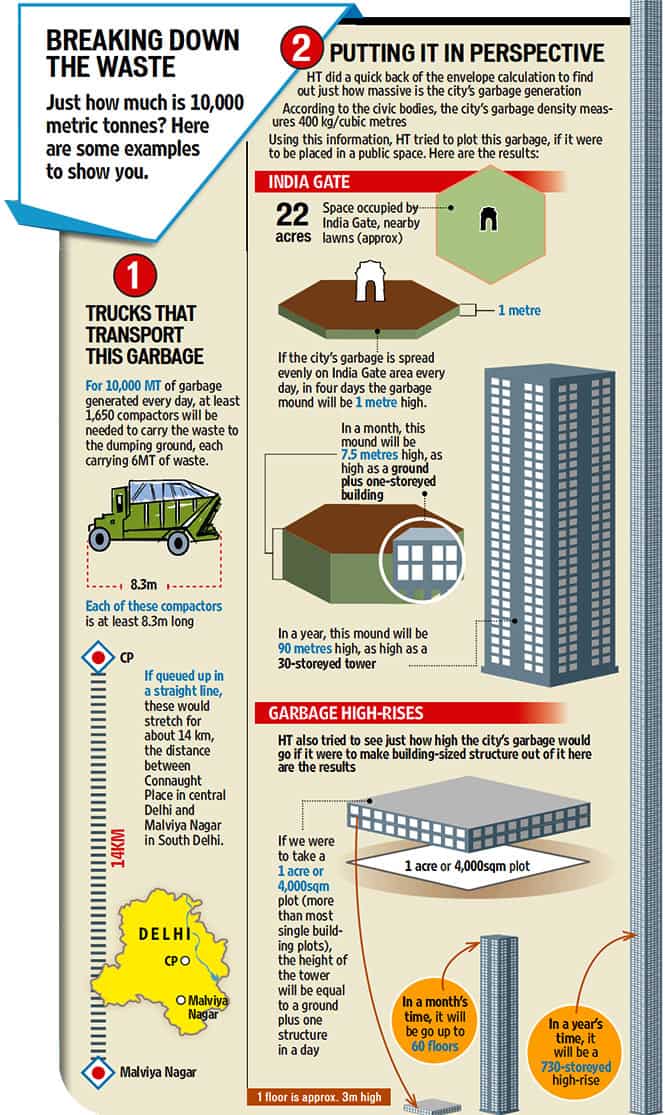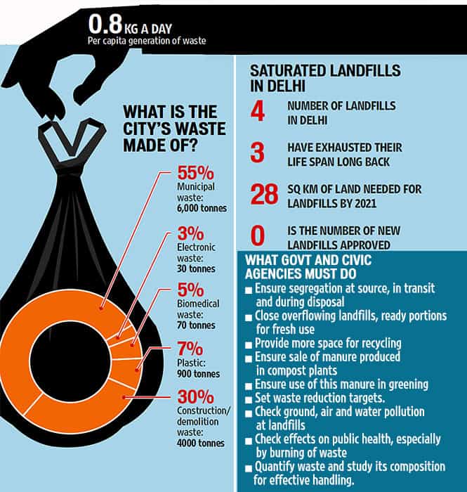 Delhi’s garbage crisis has reached a tipping point. Three of the four stinking landfills are long overdue for closure and there are no new sites available to absorb the current discard of 10,000 tonnes every day.