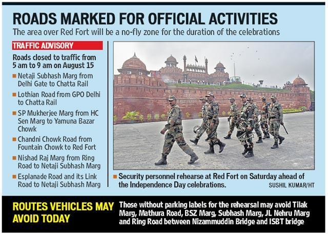 The city’s borders have been sealed. The area over Red Fort will be a no-fly zone during the celebrations. Crucial spots such as Parliament complex, international airport, railway stations, inter-state bus terminals and Metro stations will be under vigil.