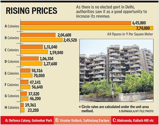 Sources said as there was no elected government in Delhi, the authorities saw it as a good opportunity to increase the circle rates and increase its revenue. Circles rates were last revised by the Sheila Dikshit government in 2012.