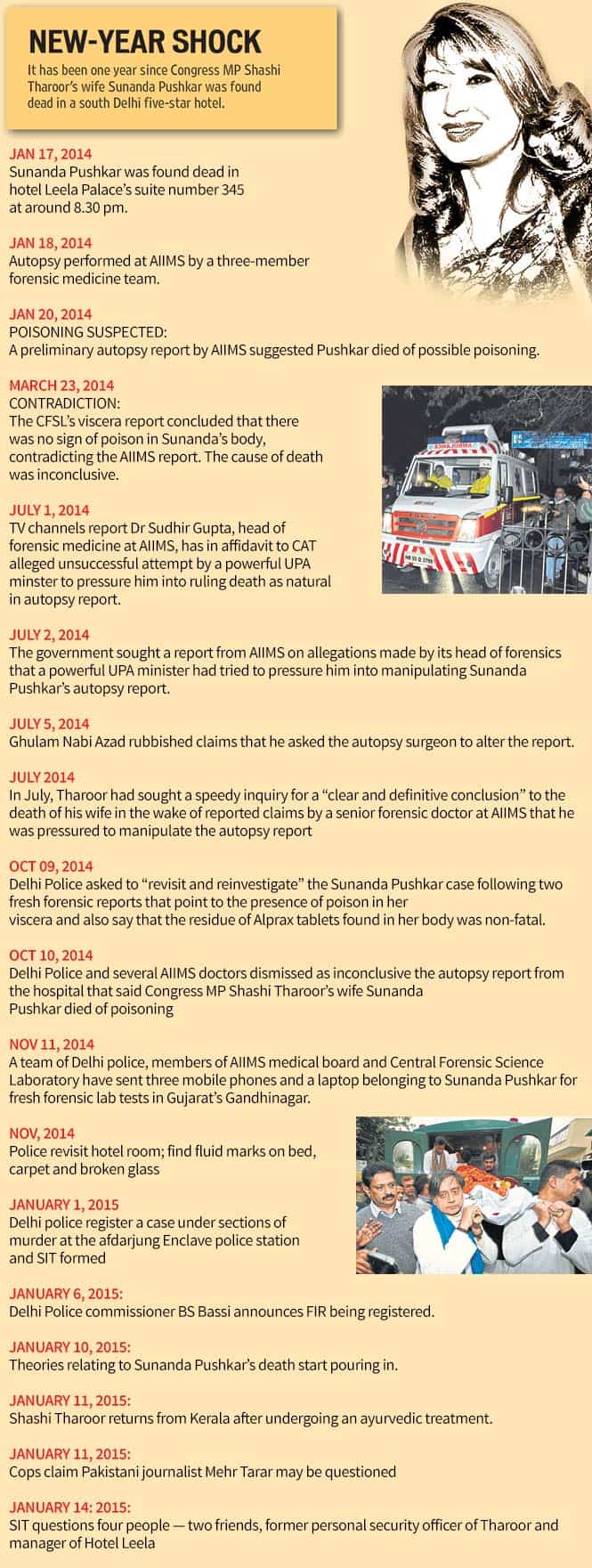 It has been exactly a year since Congress leader’s Sashi Tharoor’s wife Sunanda Pushkar was found dead and even though police filed murder case this month, there has been no significant headway even as countless theories are doing the rounds.