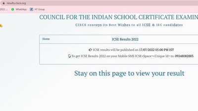 "The results of the ICSE (Class 10), 2022 examination will be declared on Sunday, July 17 at 5:00 PM. The results will be made available on the CAREERS portal of the CISCE, on the website, and through SMS," said Arathoon, the Chief Executive and Secretary, Council for the Indian School Certificate Examinations (CISCE).