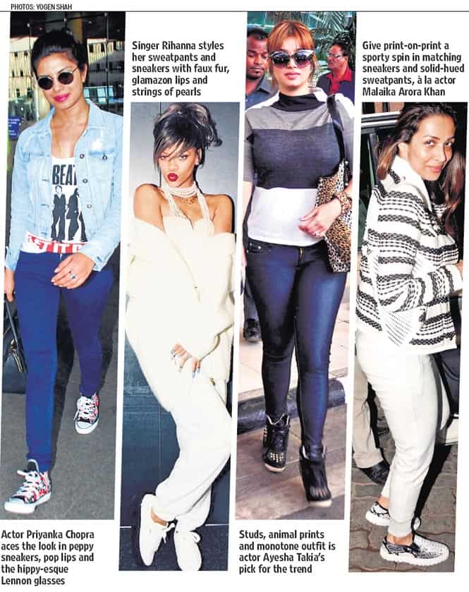 So, go ahead, fish out your favourite football team’s sweatshirt or slip on a pair of comfy trackpants, tote along a glamorous handbag and strut away in your heeled sneakers in all your sporty luxe glory.