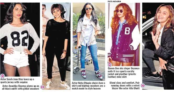 Break out of the regular fleece boots and overcoat day-in-day-out style rut to score the fashion game point. While pairing varsity jackets with your regular daywear has been oft done, here’s some celeb inspiration on how to ace this trend. We spotted a few celebrities pairing athletic get-up such as running shoes, tracksuits and even visors with plush accents.