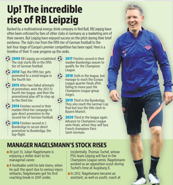 RB Leipzig is a story few thought was possible when energy drinks giant Red Bull took over amateur club SSV Markranstaedt. A story which grew from an idea of owning a portfolio of clubs. A story which has at its heart adroit recruitment of young players. A story now given wings by a coach who turned 33 last month. It is also the story of a club which took in its stride the loss of its highest goalscorer for the season when Timo Werner went to Chelsea for 47.5 million pounds.