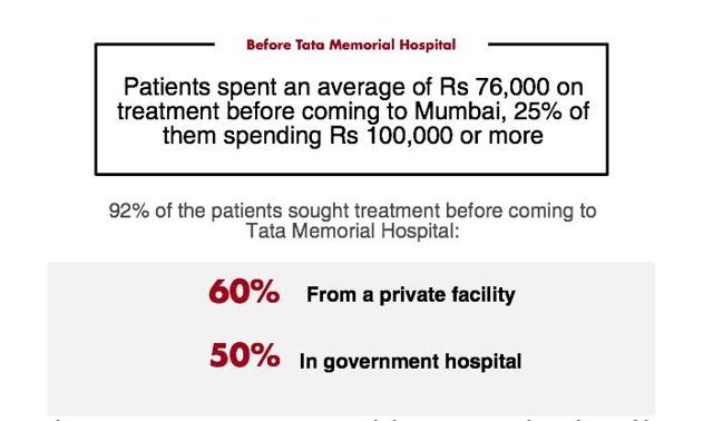 They spent, on average, Rs 76,000 on treatment before coming to Mumbai, with 25% of them spending Rs 100,000 or more.