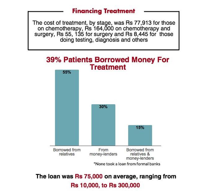 Each patient, as we said, reported losing an average of Rs 55,000 because of cancer and the resultant displacement.