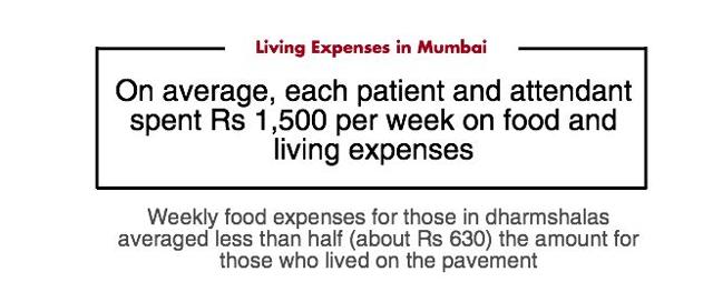 The patients also lost Rs 55,000, on average, in wages due to cancer. Even though they were living on the footpath, they spent Rs 1,500 every week on food and other expenses.