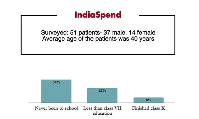 Our survey found most patients were, with an average age of 40, relatively young; three were younger than 18 and one was over 60. Of these, 34% had never been to school, while 22% had a class 7 education or less, and no more than 8% had completed class 10.