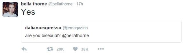 Actress-singer Bella Thorne has revealed that she is bisexual while answering a fan question on Twitter.